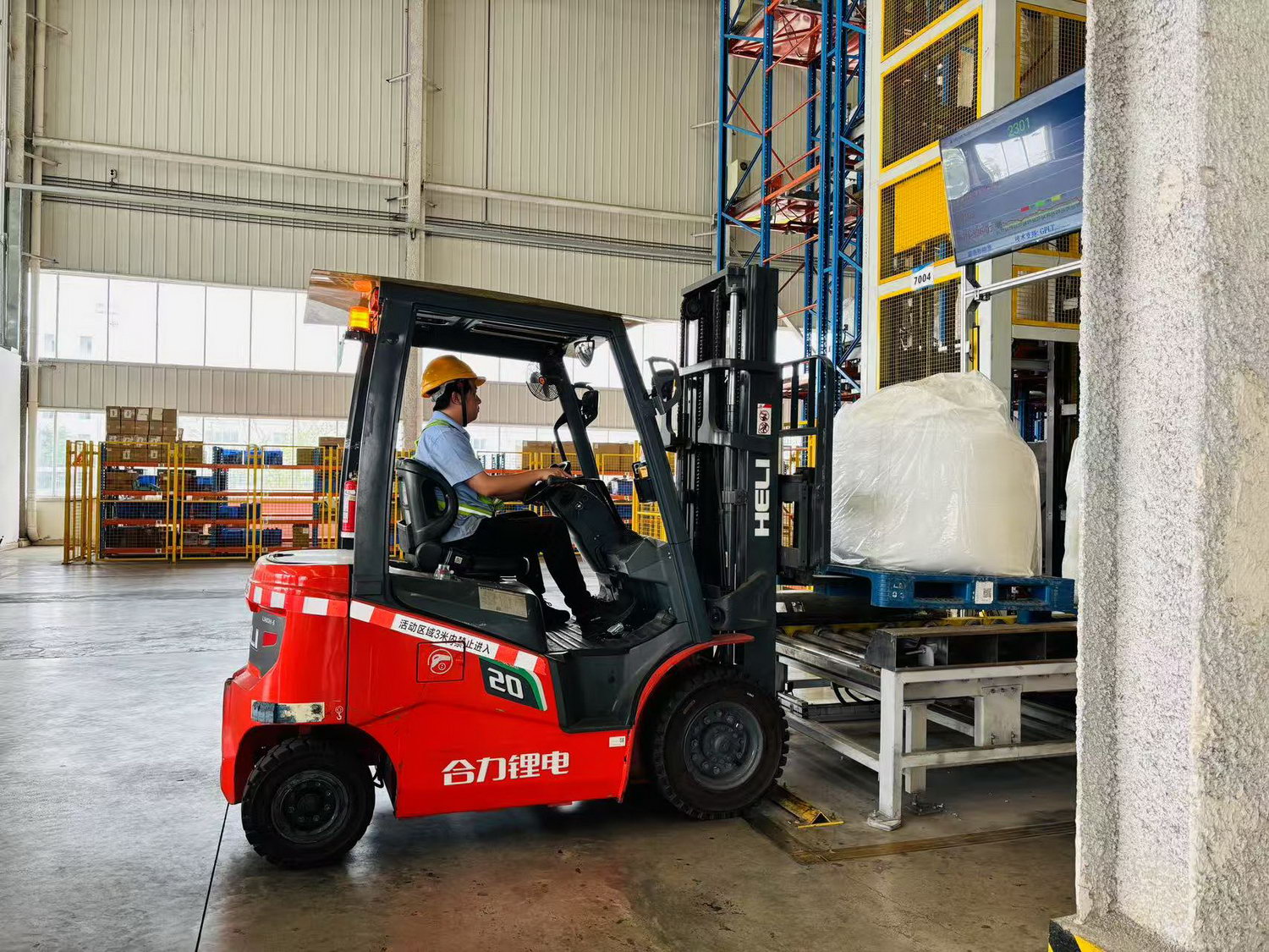 四川富临新能源科技有限公司立体仓库,工人将原材料入库。 全媒体记者 何飞 摄