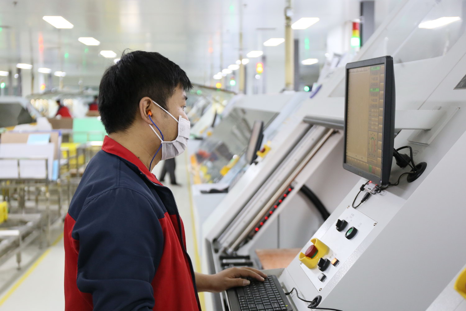 四川英创力电子科技股份有限公司测试车间,工人们正在生产线赶订单。李谨益 摄