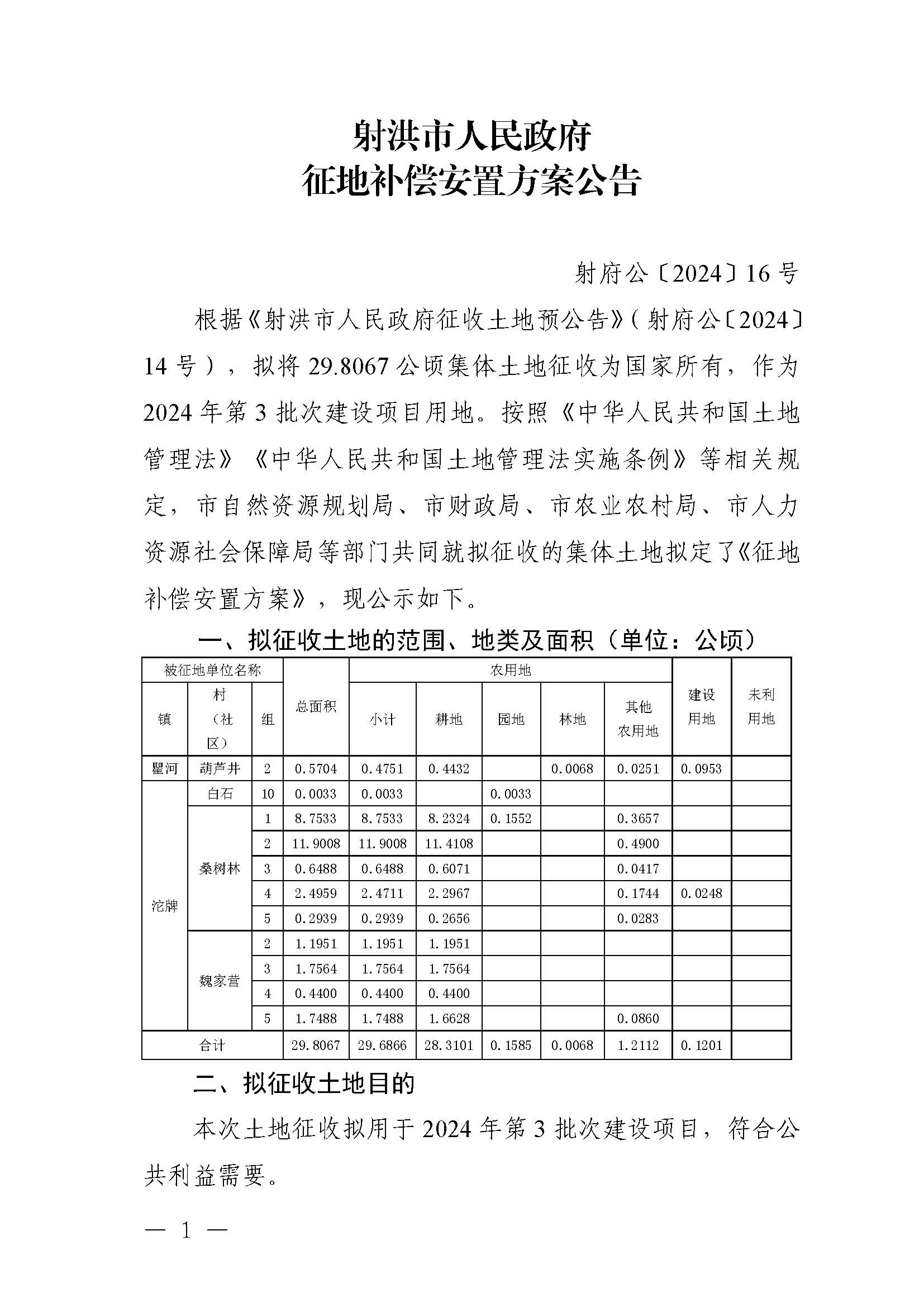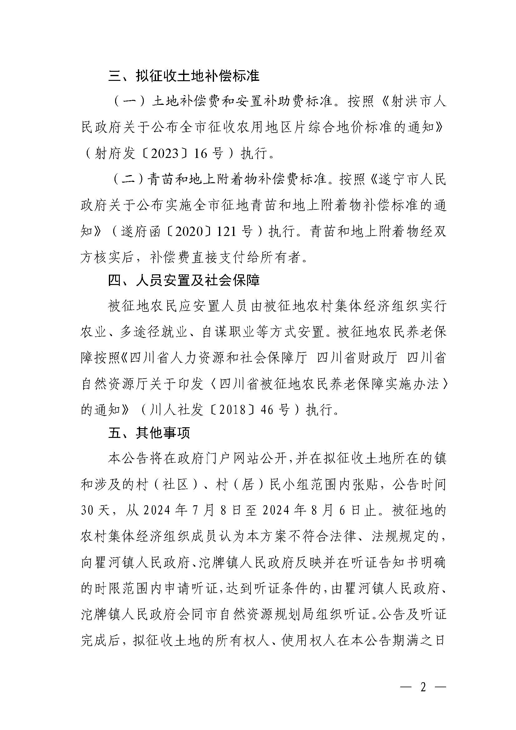 射洪市人民政府征地补偿安置方案公告(射府公〔2024〕16号)