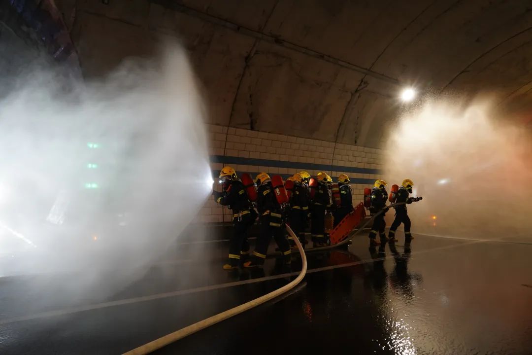 经过各单位的通力协作、密切配合,隧道内明火被扑灭,被困人员成功救出,演练行动取得圆满成功。