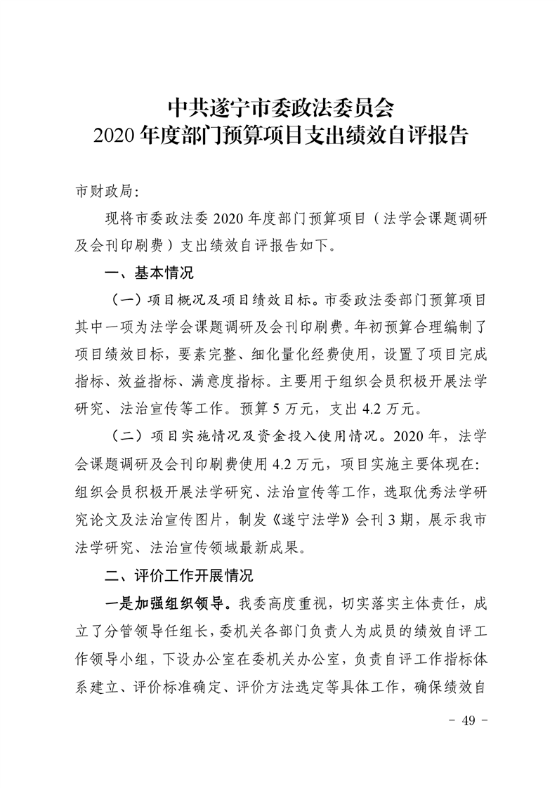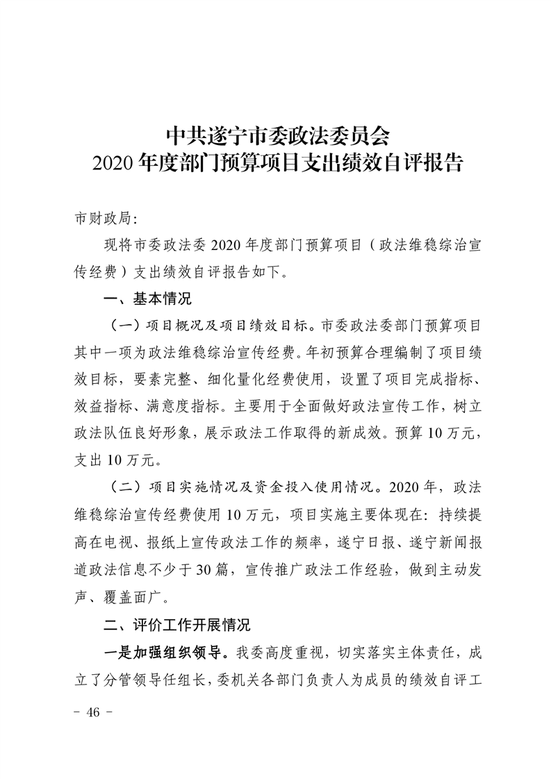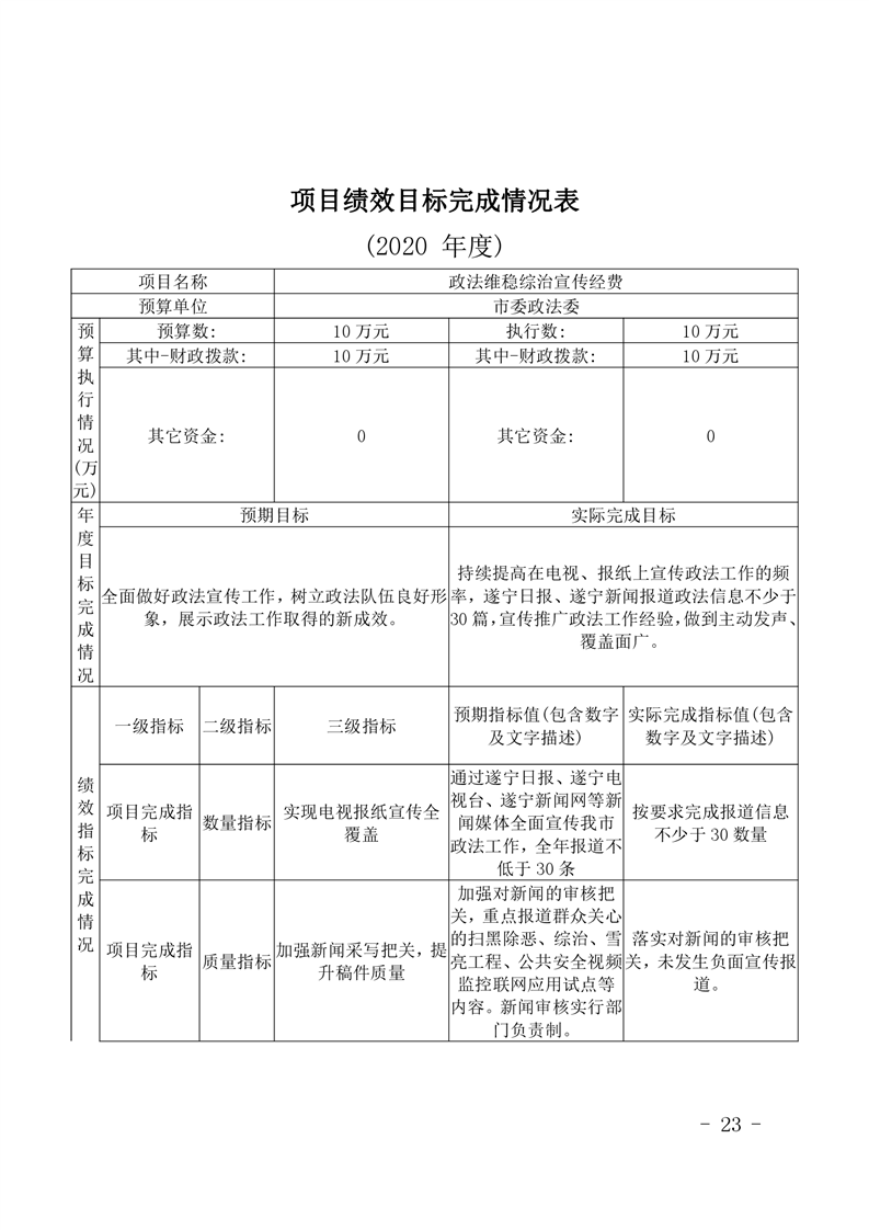 中共遂宁市委政法委员会2020年部门决算公开本级