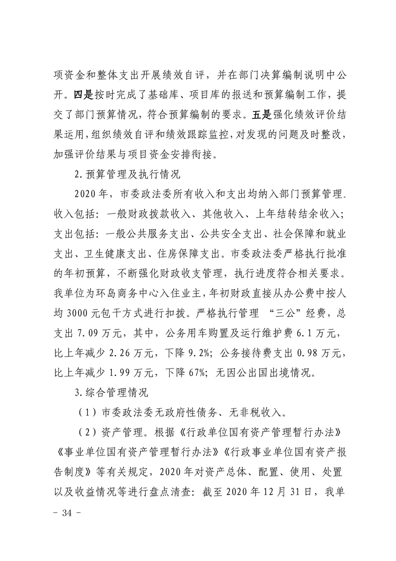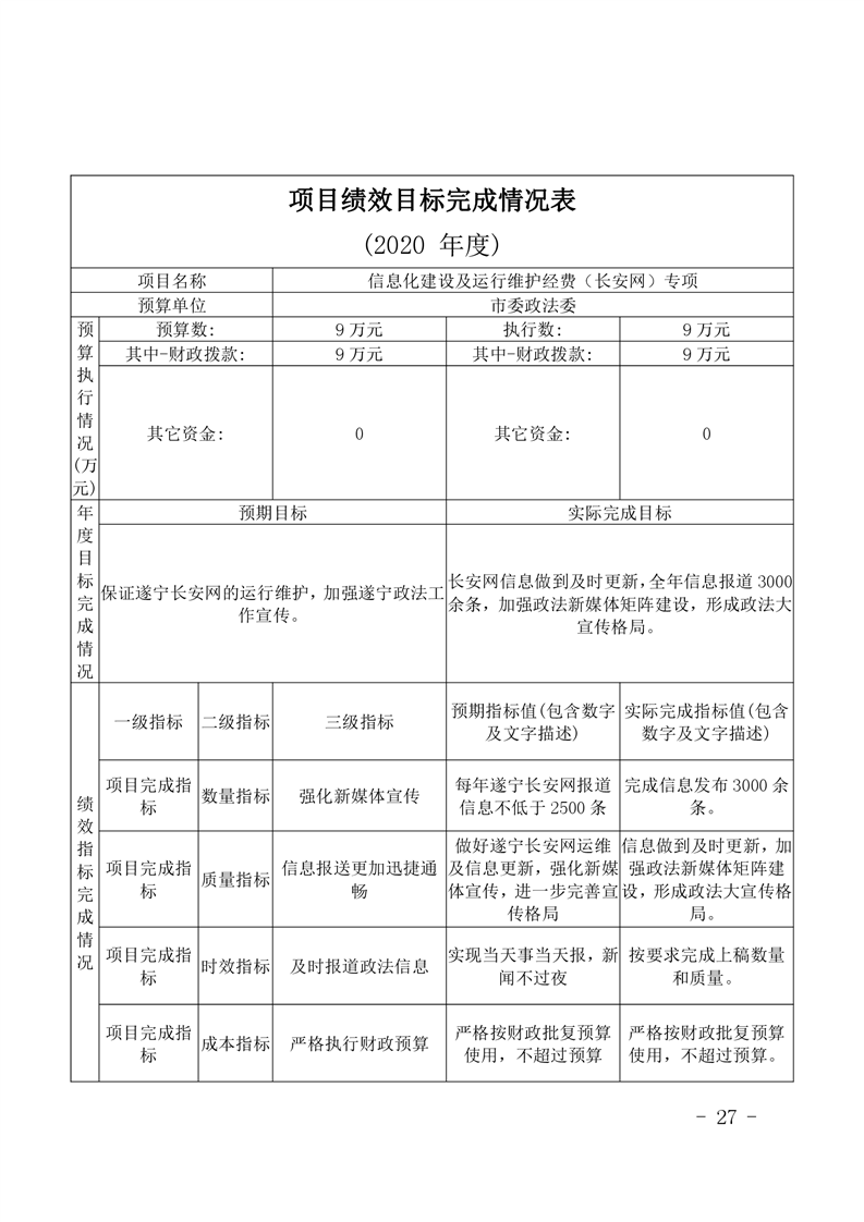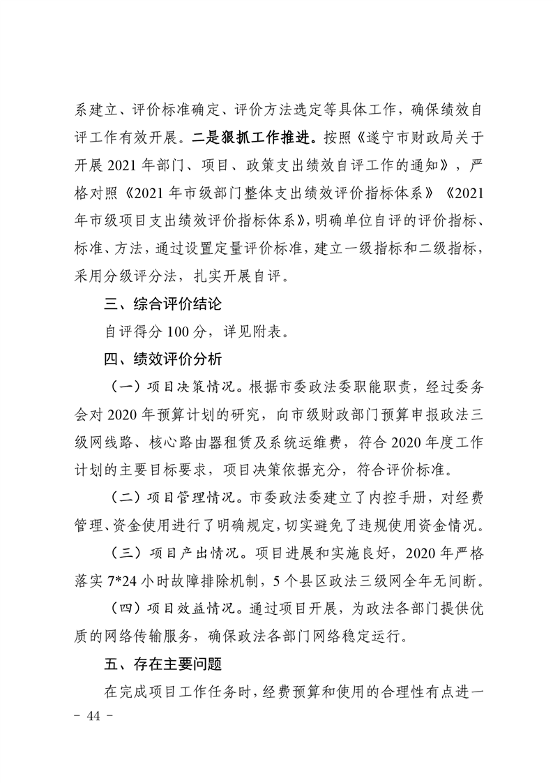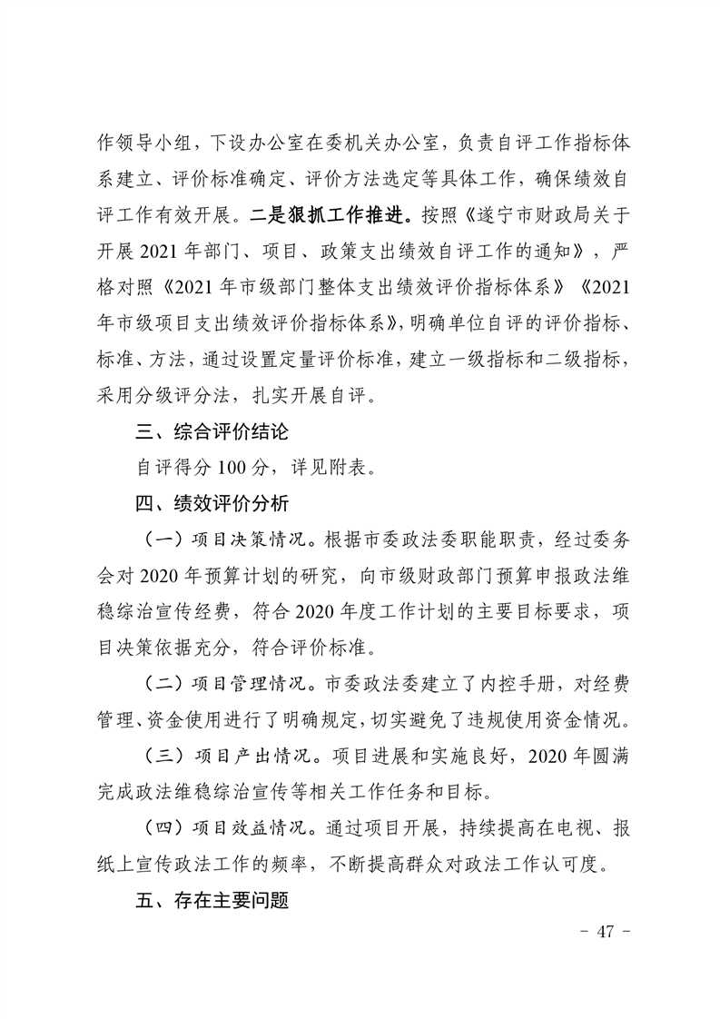 中共遂宁市委政法委员会2020年部门决算公开本级