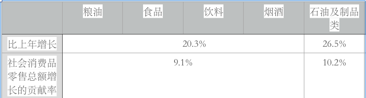 2018年,从16大类商品来看,遂宁粮油食品类、石油及制品类对消费品市场支撑作用明显。限额以上粮油、食品、饮料、烟酒类比上年增长20.3%,对社会消费品零售总额增长的贡献率为9.1%;限额以上石油及制品类比上年增长26.5%,对社会消费品零售总额增长的贡献率为10.2%。