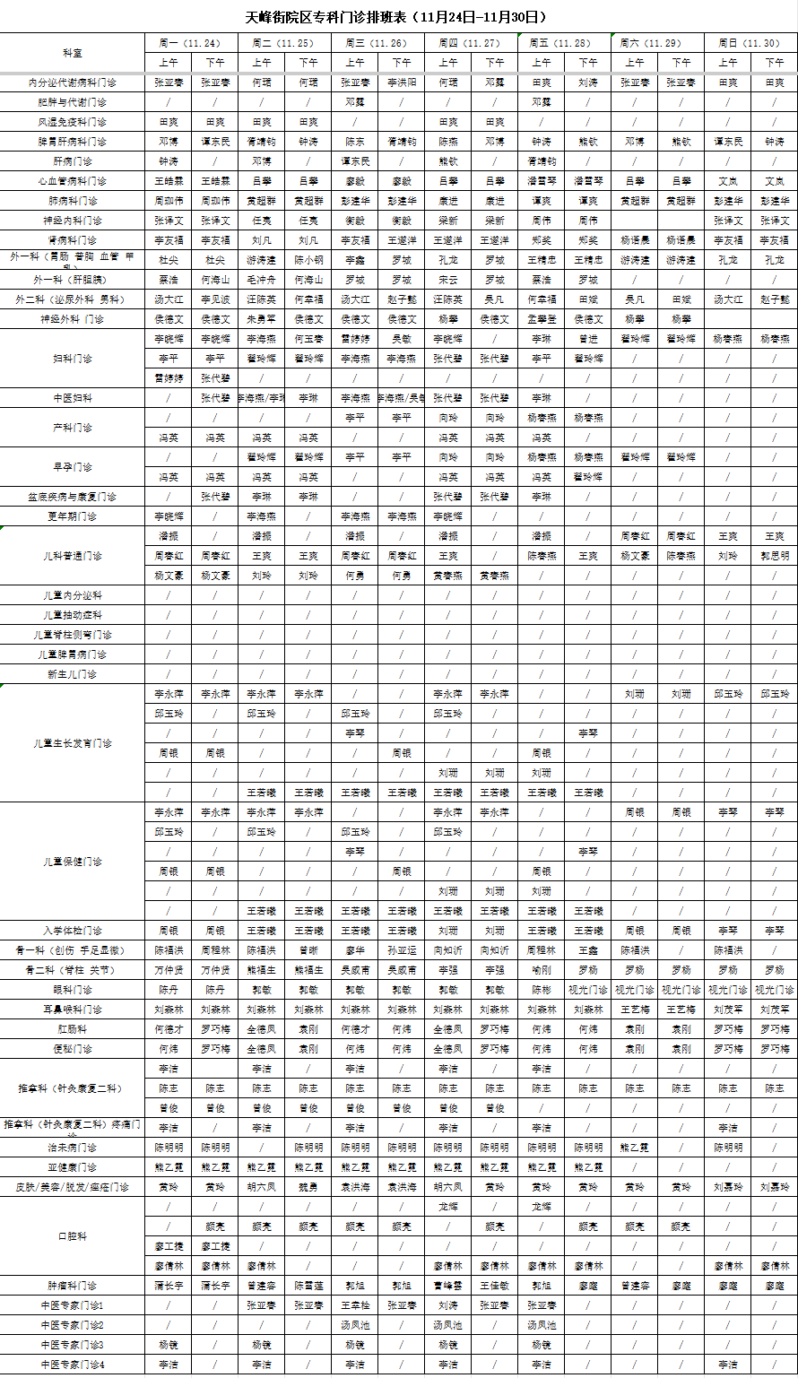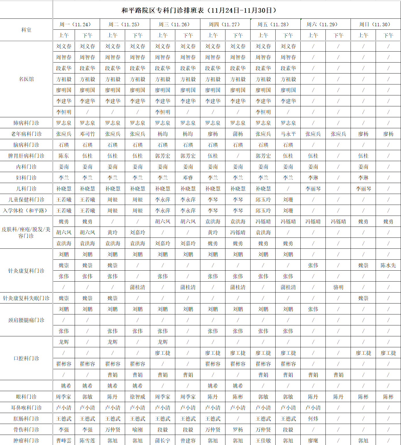 【便民信息】医生专科门诊安排(11.24—11.30)