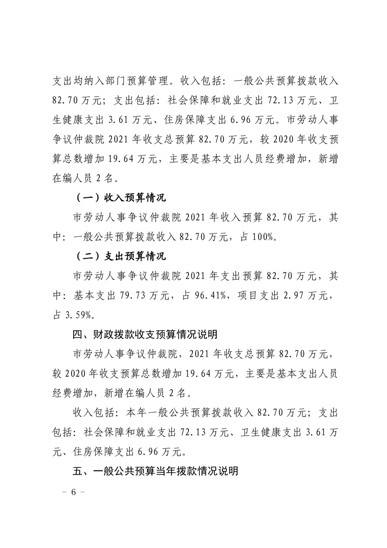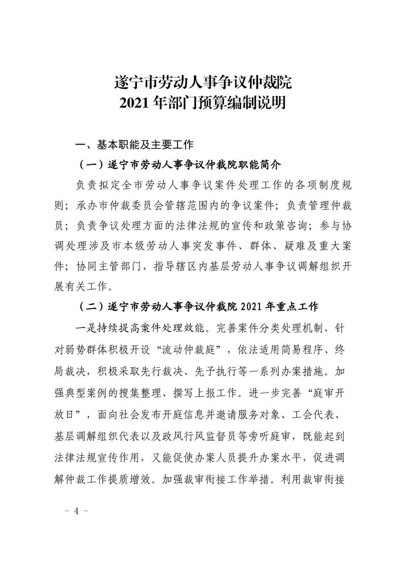 遂宁市劳动人事争议仲裁院2021年部门预算
