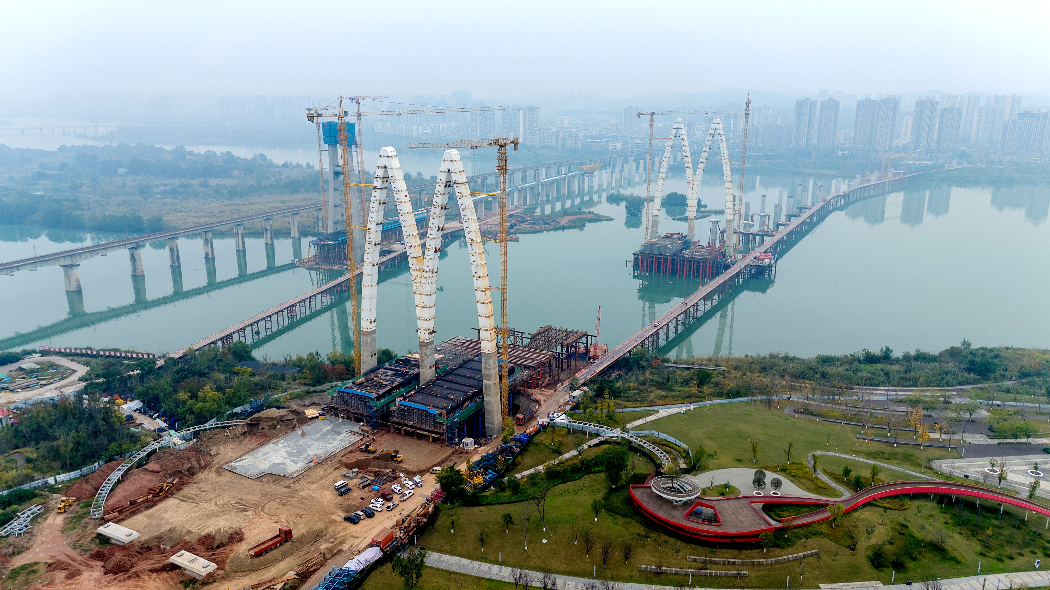 “目前已完成主桥的索塔封顶以及东引桥的主体结构,西引桥的下部结构施工已完成,正在进行主桥两侧的斜拉箱梁施工,预计明年7月完成主桥箱梁合龙。”遂宁发展城建集团项目管理部部长黄惠勇说。