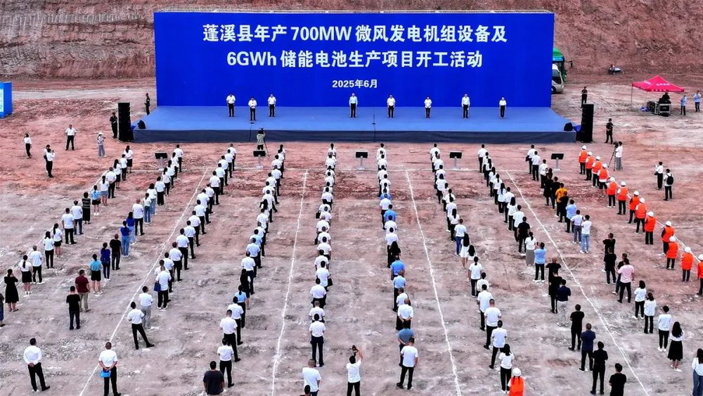 大干、快干的“遂宁效率”再次释放强劲吸引力——6月5日,蓬溪县年产700兆瓦微风发电机组设备及6GWh储能电池生产项目开工。