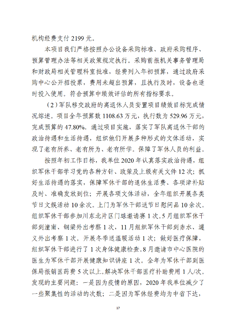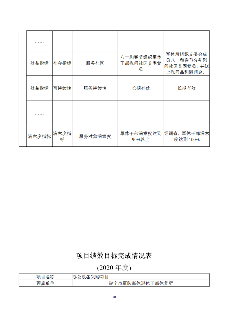 2020年度遂宁市军队离休退休干部休养所部门决算