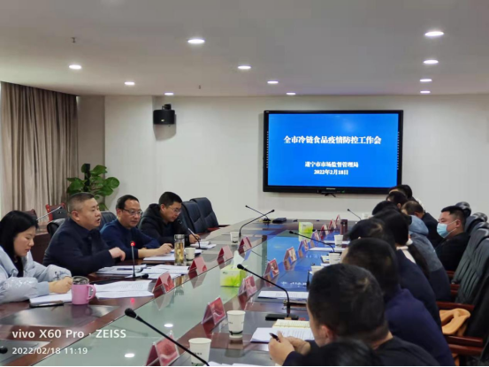 为贯彻落实全省冷链物流疫情防控工作视频会议精神,扎实做好我市进口冷链食品疫情防控工作,2月18日,遂宁市市场监督管理局召开全市进口冷链食品疫情防控工作会。会议由市市场监管局党组成员、副局长马久主持,各县(市、区)局、市直园区分局分管领导及相关股室负责人,市局食品生产、流通、餐饮科、大型食品生产经营单位、市烹饪协会等30余人参会。