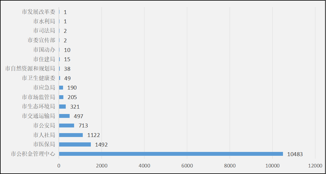 根据“一体化政务服务平台”统计,市政务服务大厅窗口办结共15141件,情况如下: