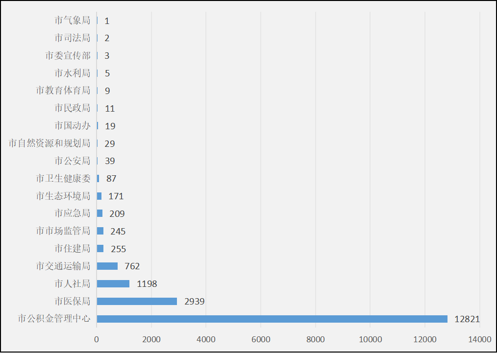 根据“一体化政务服务平台”统计,市政务服务大厅窗口办结共18805件,情况如下: