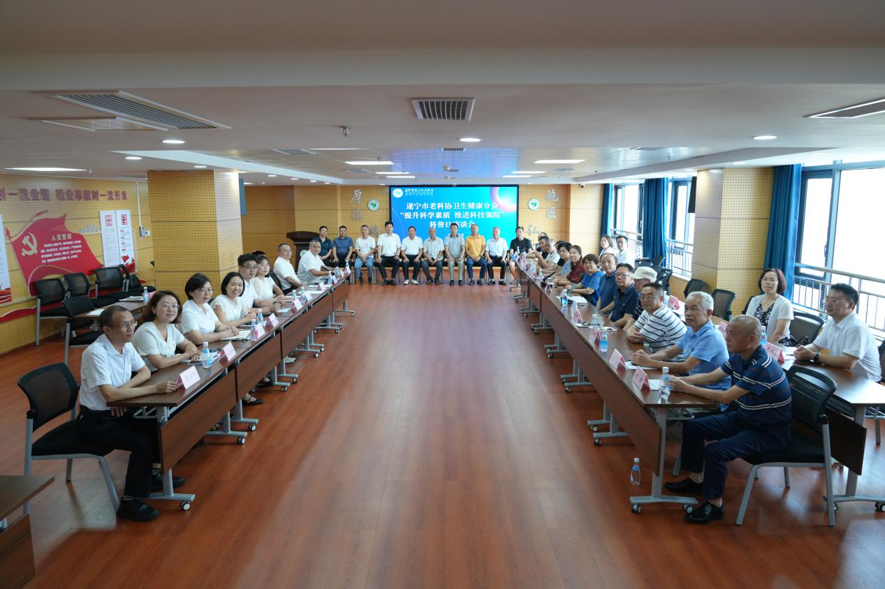 2024年9月28日,遂宁市老科协卫生健康分会在市第三人民医院举行“提升科学素质 推进科技强院”科普日调研座谈活动,市老科协卫生健康分会领导、部分老医药科技工作者代表,市第三人民医院党政领导,省、市重点专科负责同志和市卫健委党委办、船山区卫生健康局负责同志等50余人参加,市老科协荣誉理事李安成,市老科协副会长、商贸分会会长蒲成俊,市卫生健康委机关党委书记唐果出席并讲话,市老科协副会长、卫生健康分会会长孙先禹主持座谈会。