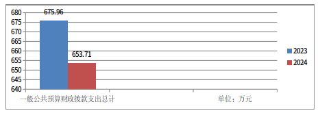 2024年度一般公共预算财政拨款支出653.71万元,占本年支出合计的100%。与2023年度相比,一般公共预算财政拨款支出减少22.25万元,下降3.29%。主要变动原因是厉行节约,缩减开支。