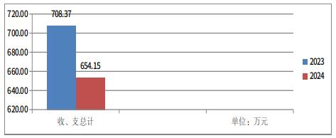 2024年度收入、支出总计均为654.15万元。与2023年度相比,收入、支出总计各减少54.22万元,下降7.65%。主要变动原因是厉行节约,缩减开支。