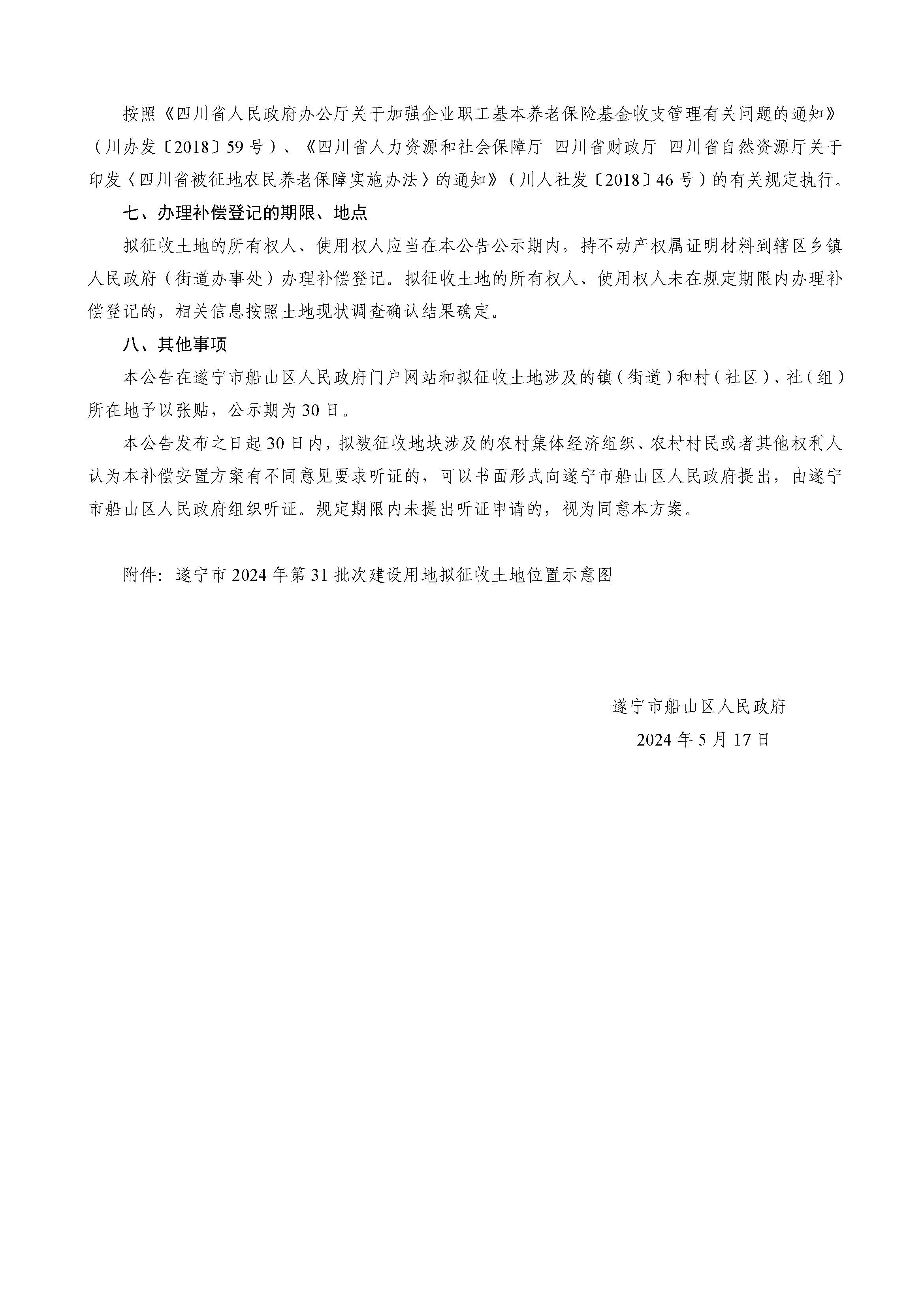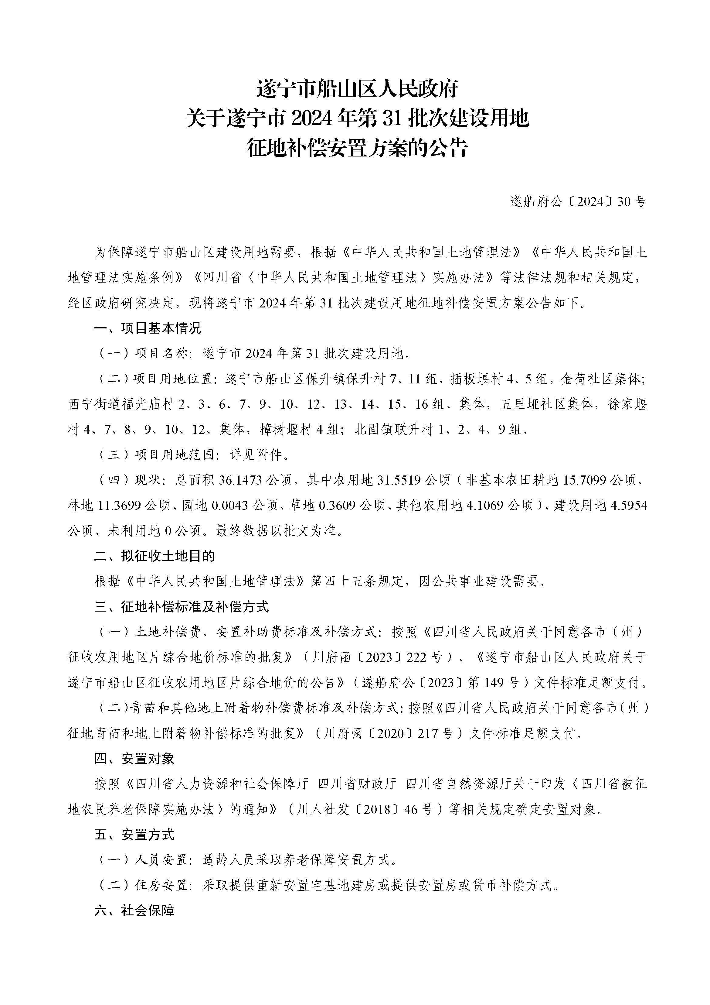 遂宁市船山区人民政府关于遂宁市2024年第31批次建设用地征地补偿安置方案的公告 (遂船府公〔2024〕30号)