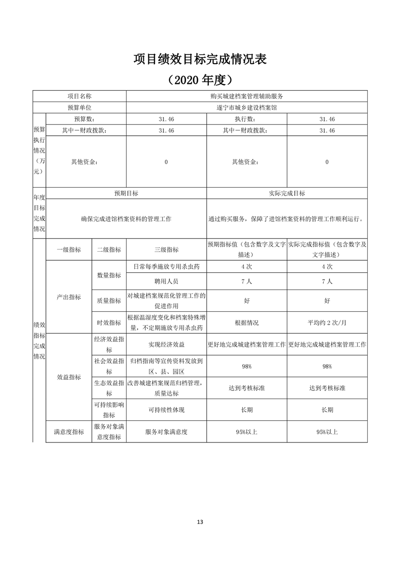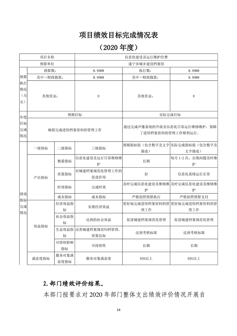 遂宁市城乡建设档案馆2020年部门决算编制说明