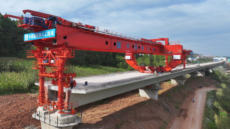 7月29日,在成达万高铁项目徐家湾特大桥建设现场,随着DF900型架桥机将最后一榀箱梁精准落位,遂宁段首座特大桥架设顺利完成,这也标志着项目桥梁建设进入桥梁上部结构施工阶段,为后续铺轨奠定了坚实基础。