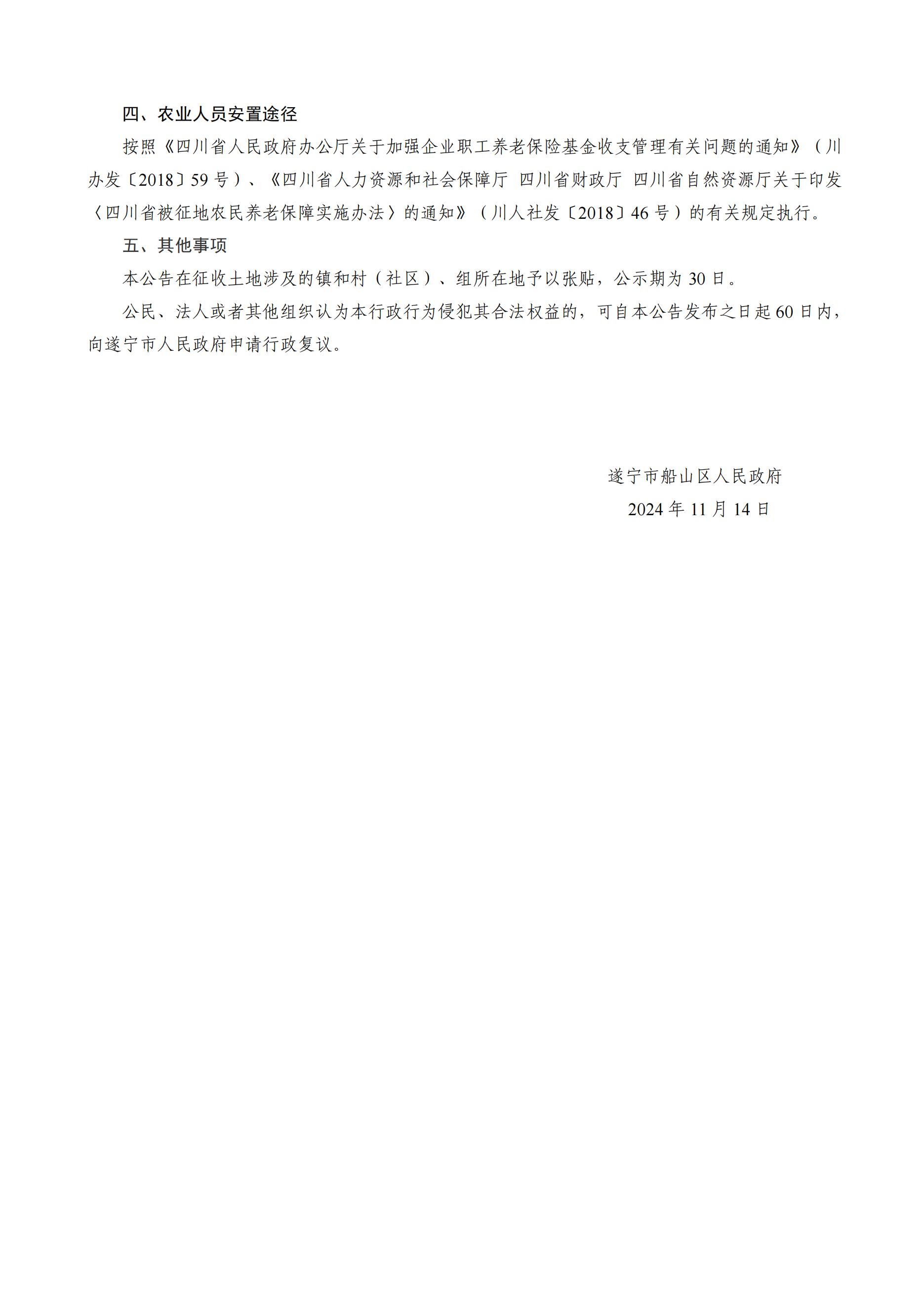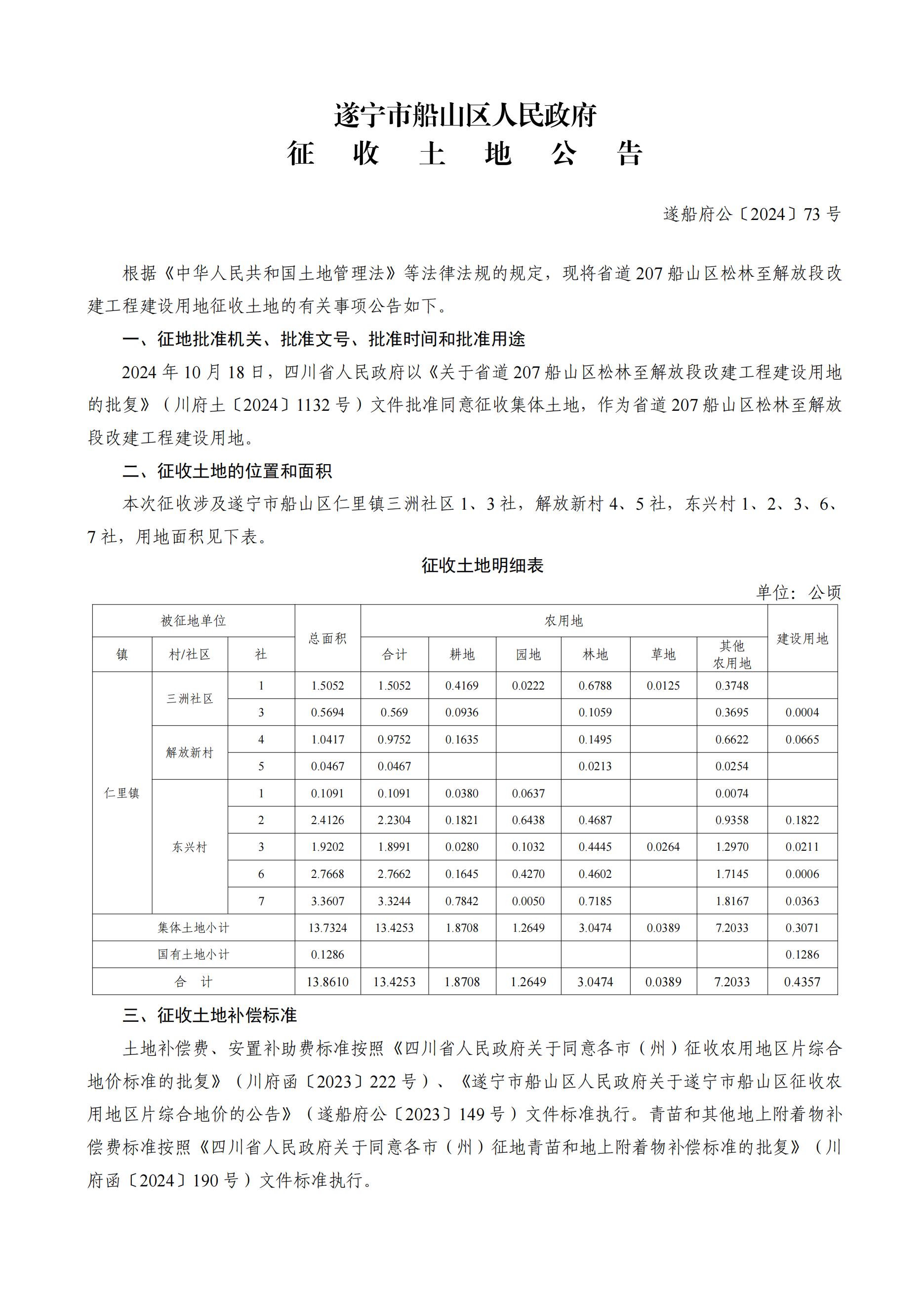 遂宁市船山区人民政府征收土地公告(遂船府公〔2024〕73 号)