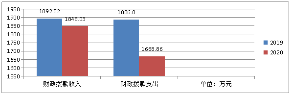 2020年财政拨款收、支总计1855.49万元。与2019年相比,财政拨款收、支总计各减少38.77万元,下降2.05%。主要变动原因是本年日常公用经费开支减少。