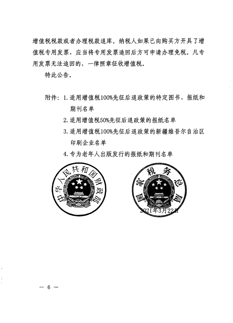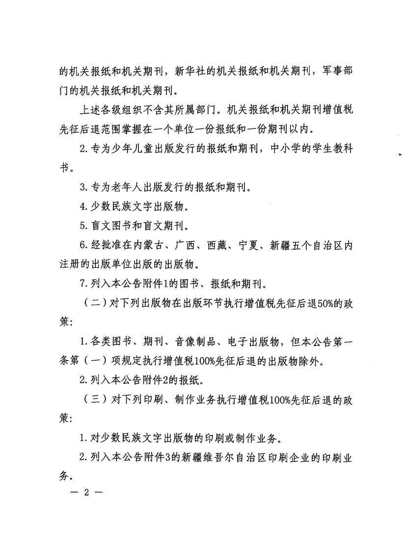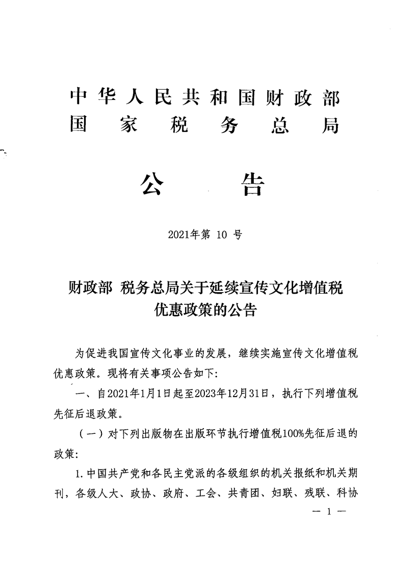 财政部 税务总局关于延续宣传文化增值税优惠政策的公告