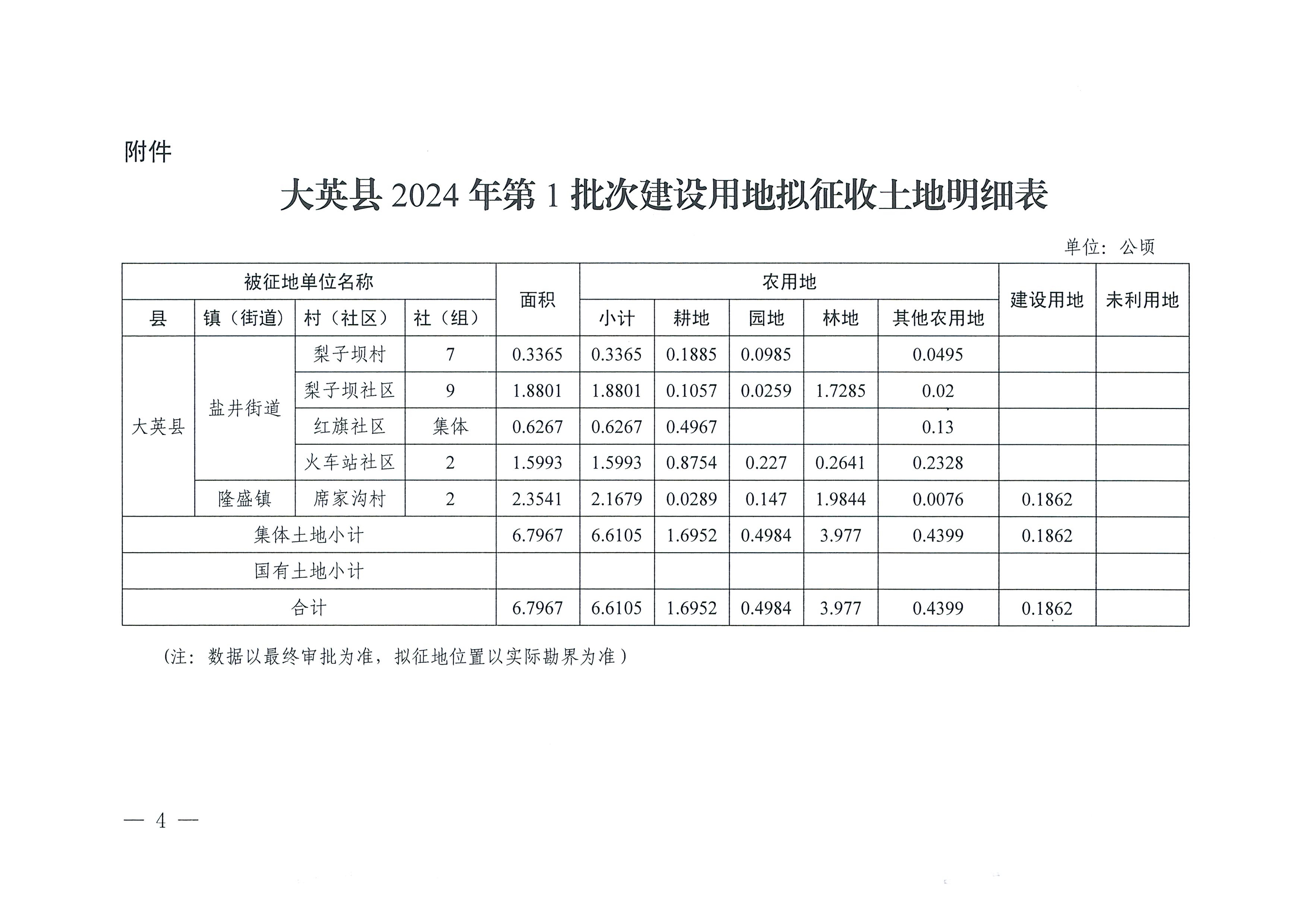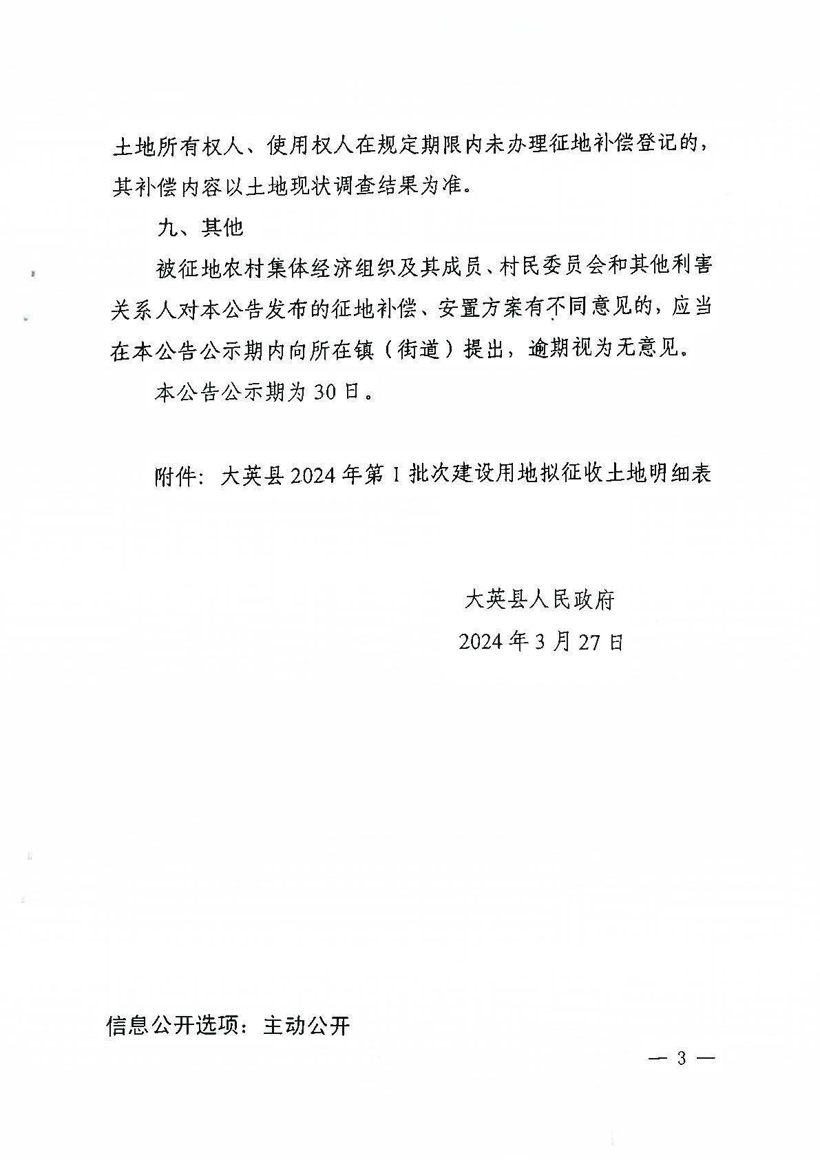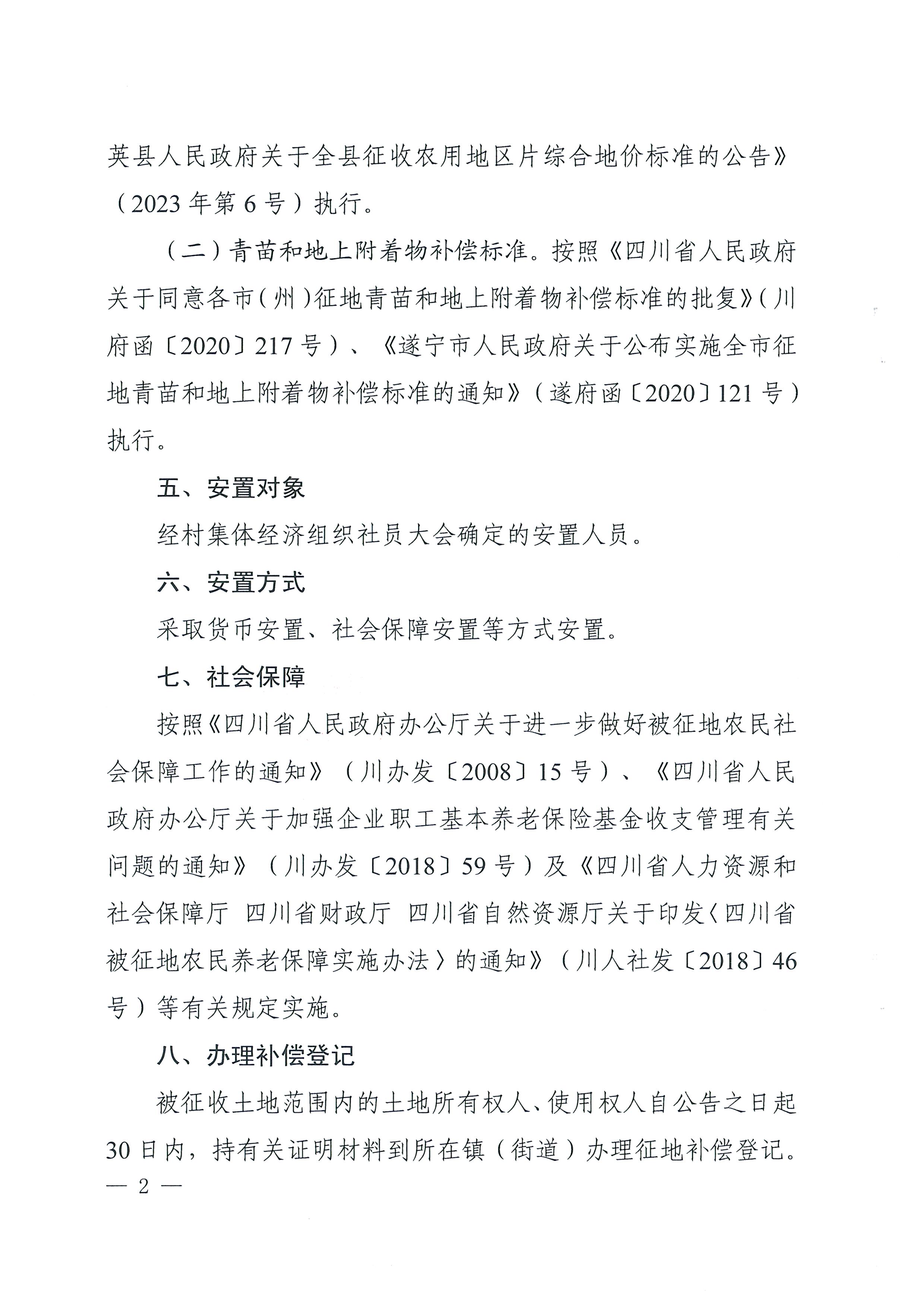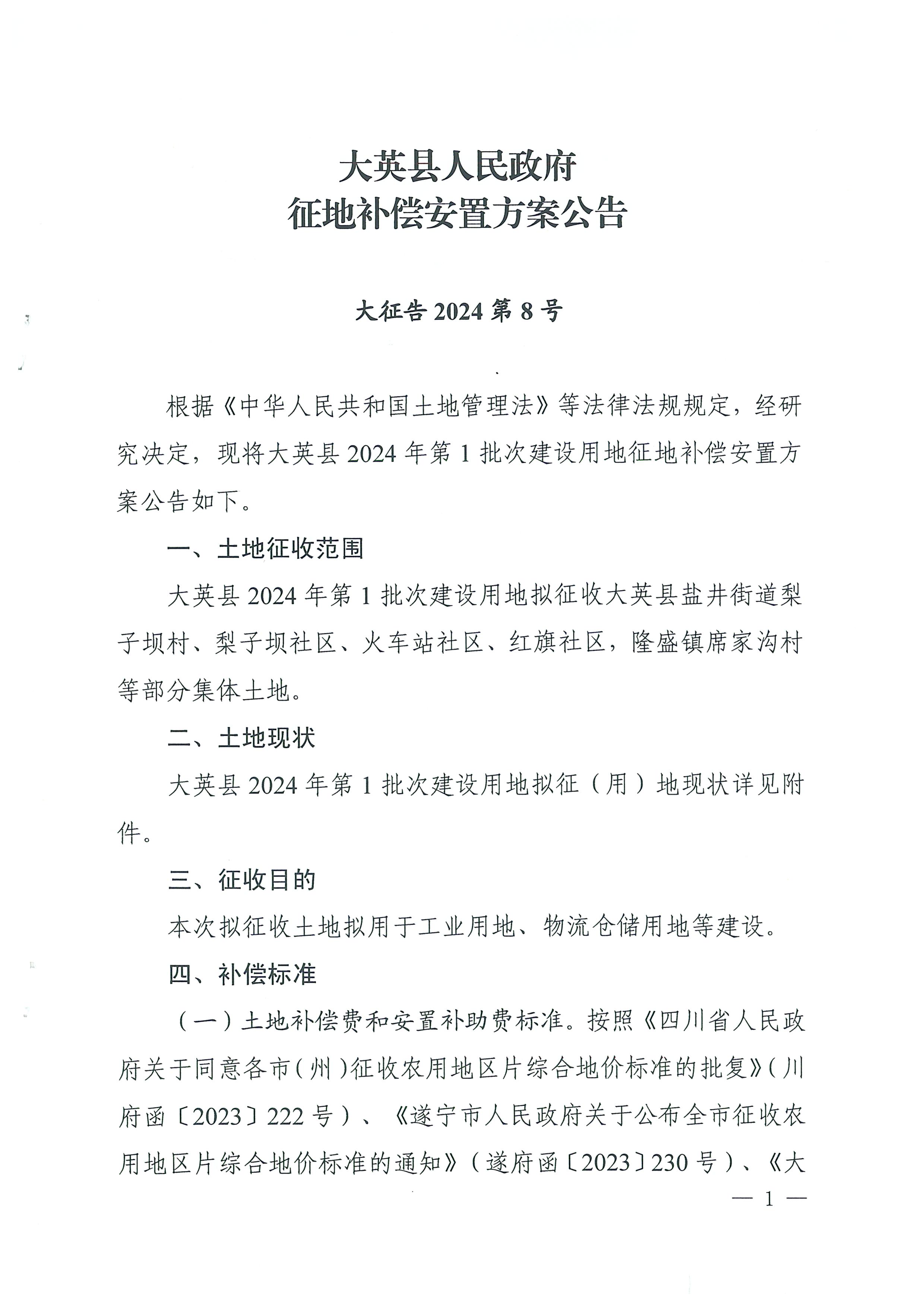 大英县人民政府征地补偿安置方案公告(大征告2024第8号)
