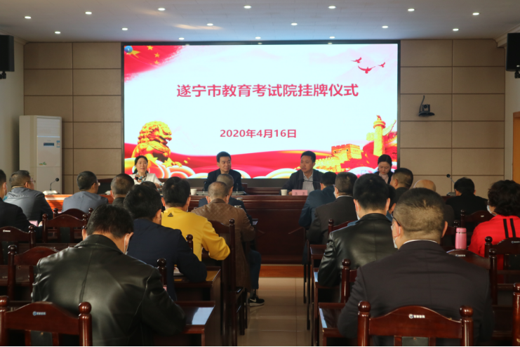 4月16日,遂宁市教育考试院挂牌仪式在市教育和体育局隆重举行。副市长、市招考委主任袁冰出席会议并作重要讲话,市政府副秘书长、市招考委副主任蒋晟,市委教育工委书记、市教育和体育局党组书记、局长、市招考委副主任肖霞,市教育和体育局班子成员等领导出席会议,市教育和体育局中层干部,市教育考试院全体干部职工、各县(市、区)招办主要负责人参加会议。会议由肖霞主持。
