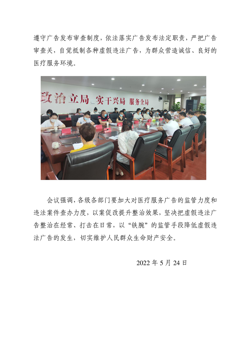 全市整治虚假违法广告联席会议2022 年第二 次会议暨医疗机构集中约谈会召开