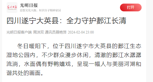 光明日报客户端关注︱遂宁大英县:全力守护郪江长清