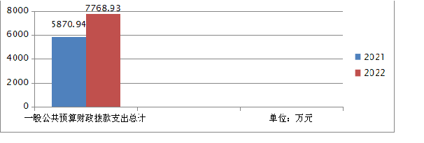 2022年一般公共预算财政拨款支出7768.93万元,占本年支出合计的78.87%。与2021年相比,一般公共预算财政拨款支出增加1897.99万元,增长24.43%。主要变动原因是我校西校区三期工程建设正式实施。