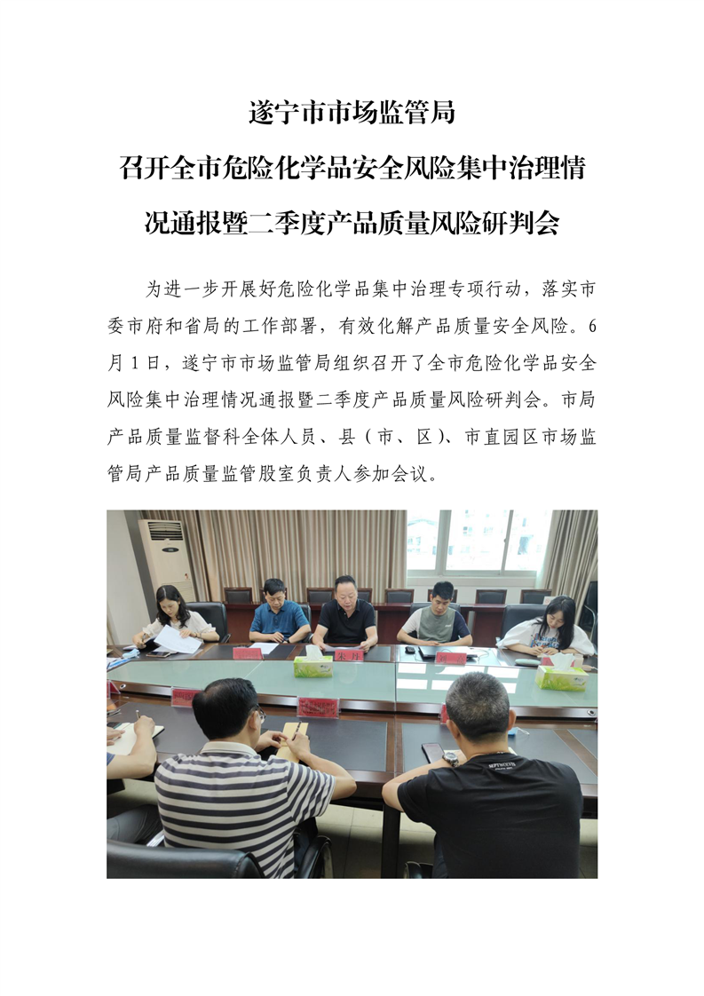 遂宁市市场监管局 召开全市危险化学品安全风险集中治理情况通报暨二季度产品质量风险研判会