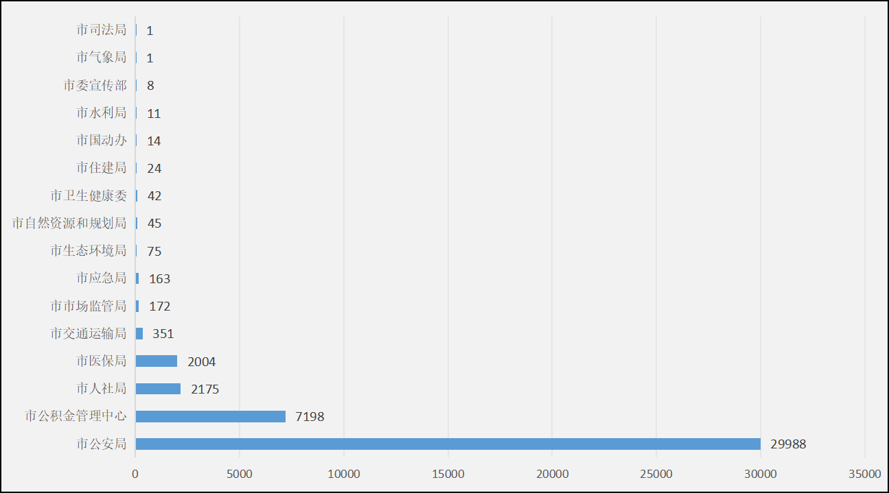 根据“一体化政务服务平台”统计,市政务服务大厅窗口办结共42272件,情况如下: