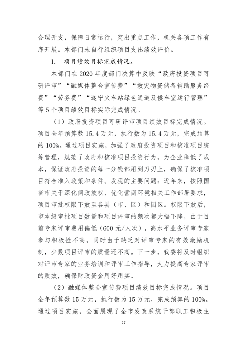 2020年度遂宁市发展和改革委员会部门决算(本级)