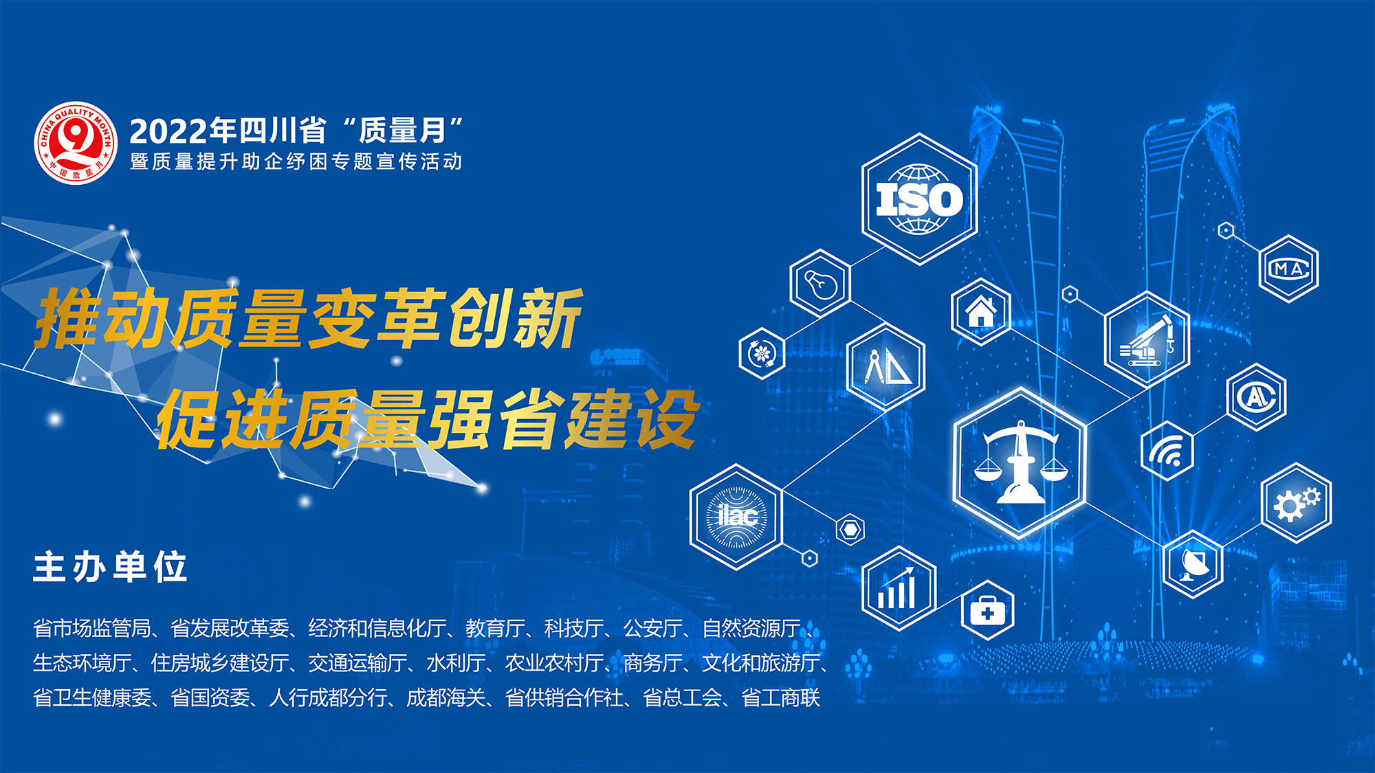 省市场监管局评选发布质量提升优秀案例,开展十佳首席质量官选树活动,启动2022年度四川天府质量奖申报评选工作,开展产品质量安全进校园、进乡镇(街道)、进企业及电梯安全宣传周、绿色产品认证宣传周、有机产品认证宣传周、检验检测机构开放日等活动;省发展改革委开展中国品牌日四川系列活动;经济和信息化厅组织召开2022年四川省工业质量标杆经验交流现场会;教育厅启动2022年全省中小学(幼儿园)教育装备质量抽检监测工作;公安厅重点开展打击侵权假冒犯罪行动;科技厅组织实施省级科技计划质量标准技术项目;住房城乡建设厅开展质量主题宣传教育活动;农业农村厅开展农资质量提升行动等。全省各市(州)、县(市、区)及相关部门“质量月”活动点多面广,以引导广大群众主动参与质量促进、社会监督等活动,营造“政府重视质量、企业追求质量、社会崇尚质量、人人关心质量”的良好氛围。
