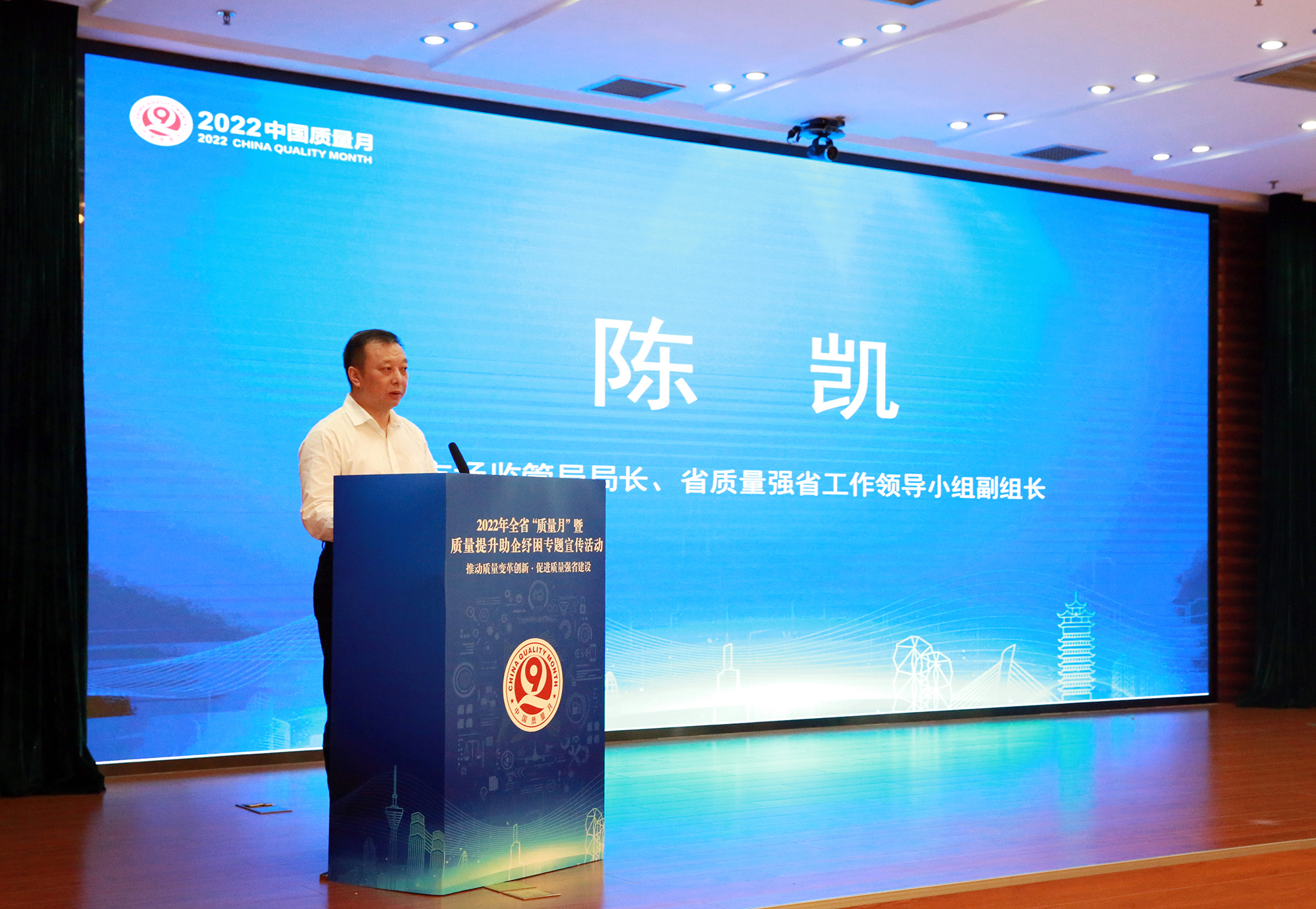 省市场监管局局长、省质量强省工作领导小组副组长陈凯出席并讲话。经济和信息化厅一级巡视员肖世同、交通运输厅副厅长许磊、农业农村厅二级巡视员张履平、文化和旅游厅二级巡视员杨铭、省市场监管局机关党委书记徐勇出席并通报质量工作。