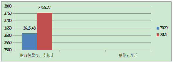 2021年财政拨款收、支总计3755.22万元。与2020年相比,财政拨款收、支总计各增加139.74万元,增长3.87%。主要变动原因是今年人员增加相应人员经费增加,目标奖及社保费用增加。