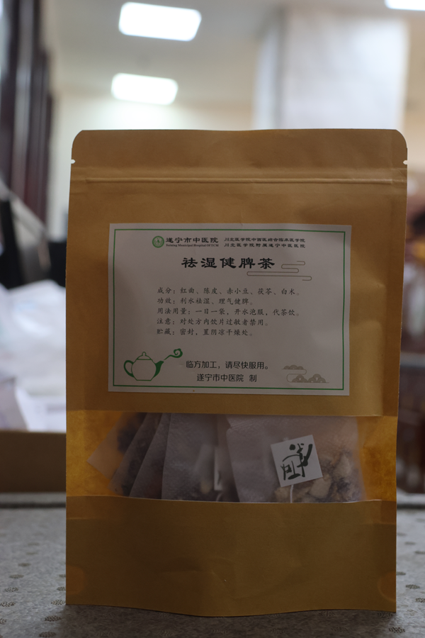 遂宁市中医院自主研发的“祛湿健脾茶”中药茶饮包。