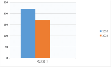 2021年度收、支总计171.05万元。与2020年相比,收、支总计减少49.65万元,下降22%。主要变动原因是项目减少,人员经费减少。