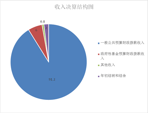 2021年本年收入合计171.05万元,其中:一般公共预算财政拨款收入156万元,占91.2%;政府性基金预算财政拨款收入9.8万元,占6%;;其他收入1.4万元,占0.8%;年初结转和结余3.86万元,占2%。