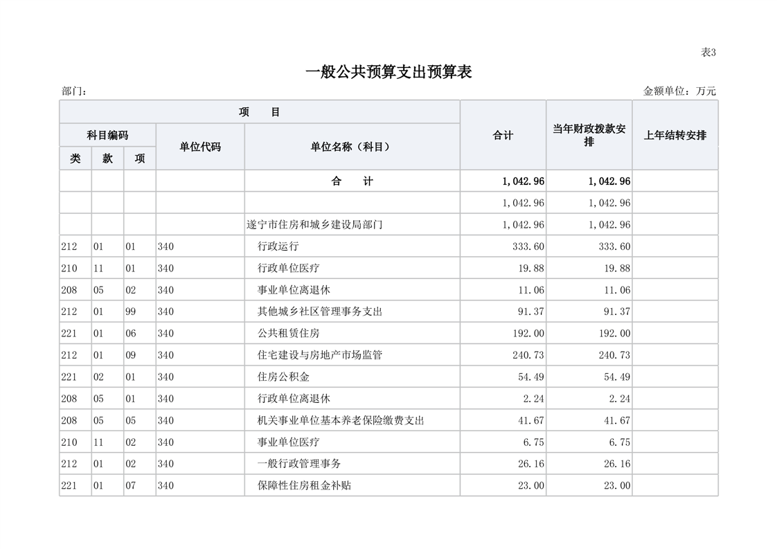 遂宁市住房保障和房屋管理局2022年部门预算