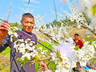 这几天,李子产业园业主岳小清忙得不可开交,除了对接全国各地的批发商外,还与工人一道对李子树进行人工授粉,为提高果实品质、实现丰产丰收打下良好基础。
