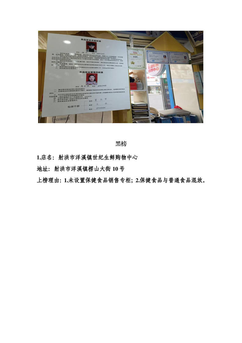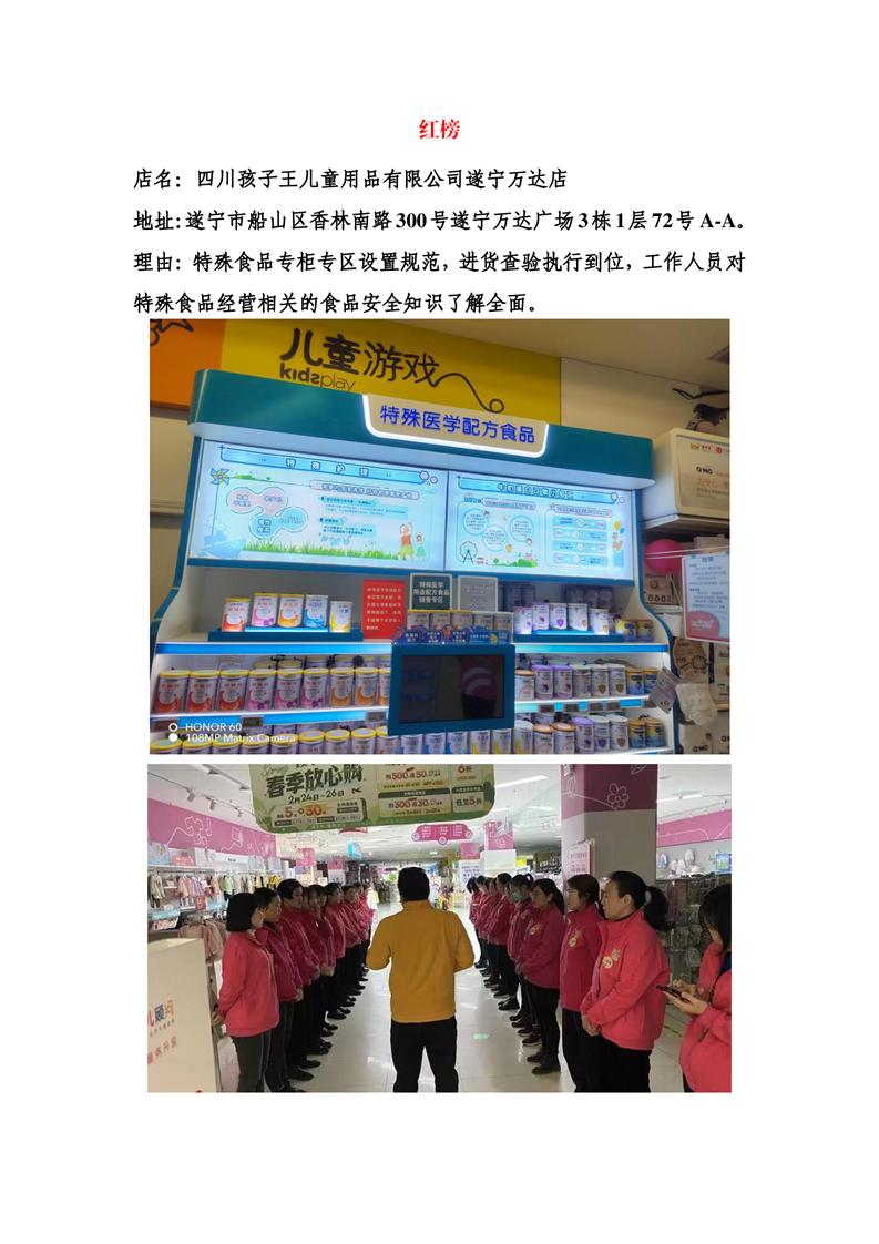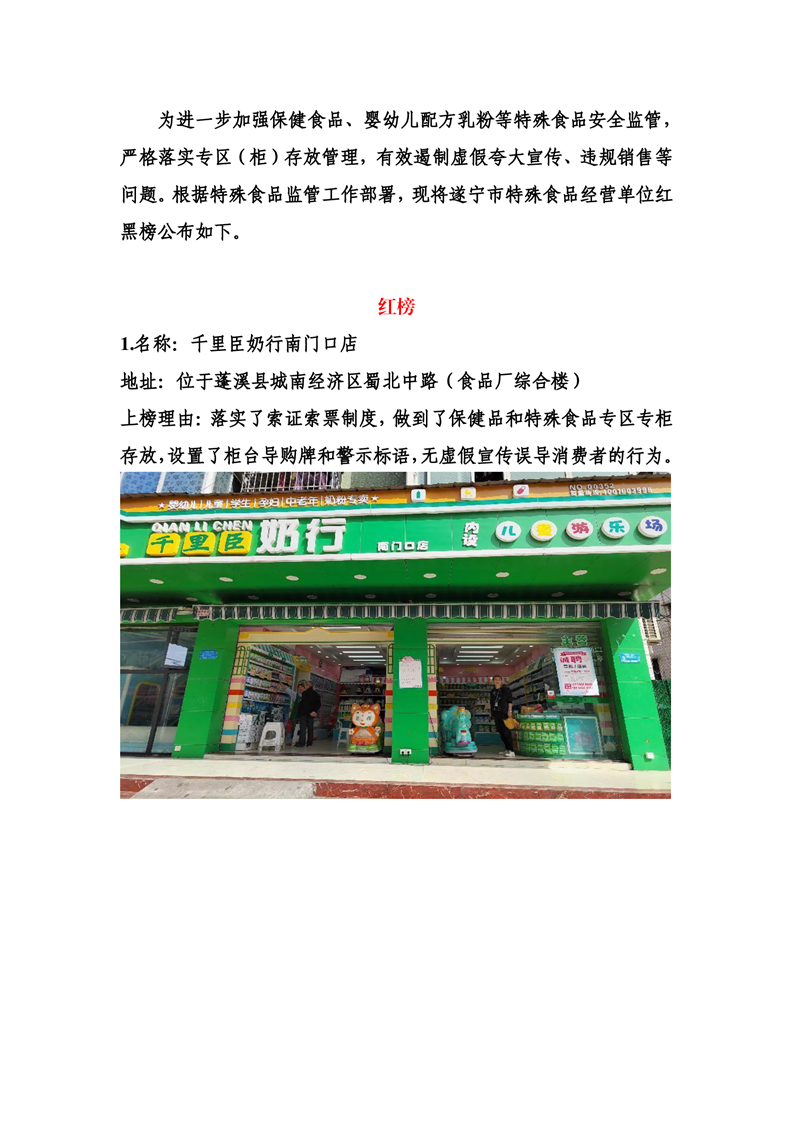 遂宁市特殊食品经营单位红黑榜(第一期)