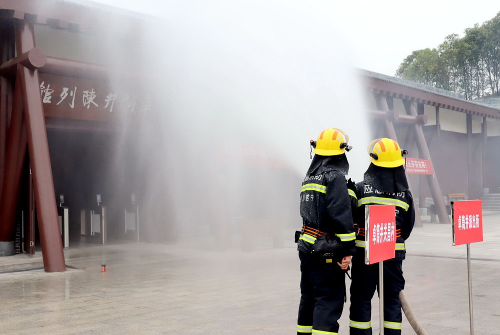 “呜——”,12月12日一早,随着一声尖锐的警报声在大英县卓筒井陈列馆前响起,一场紧张而有序的消防安全演练活动正式拉开帷幕。