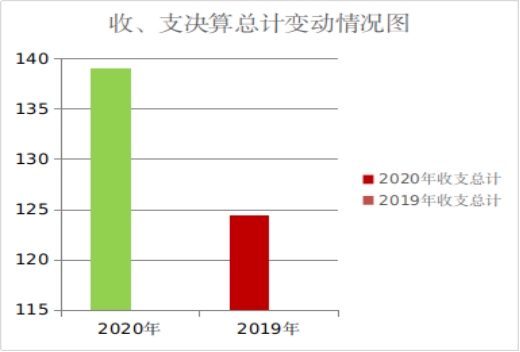 2020年度收、支总计139.05万元。与2019年相比,收、支总计各增加14.66万元,占11.79%。主要变动原因是新进编制人员。