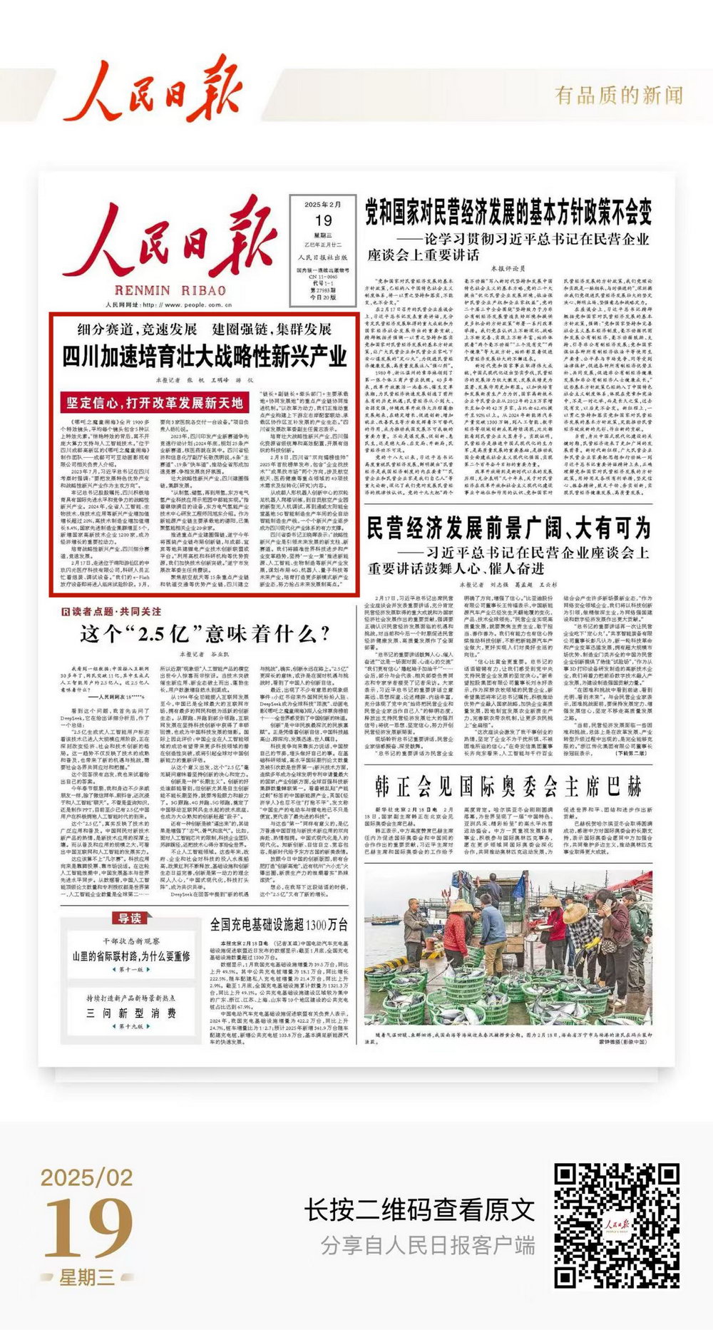 《人民日报》2025年2月19日头版