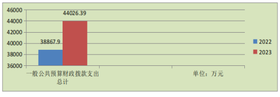2023年度一般公共预算财政拨款支出44026.39万元,占本年支出合计的78.66%。与2022年度相比,一般公共预算财政拨款支出增加5158.49万元,增长13.27%。主要变动原因是2023年度教师人数增加,2023年新增收购机电校项目、2023年政府性基金预算财政拨款增加。