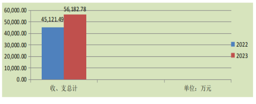 2023年度收、支总计均为56182.78万元。与2022年度相比,收、支总计各增加11061.29万元,增长24.51%。主要变动原因是2023年度教师人数增加,2023年新增收购机电校项目、2023年政府性基金预算财政拨款增加。