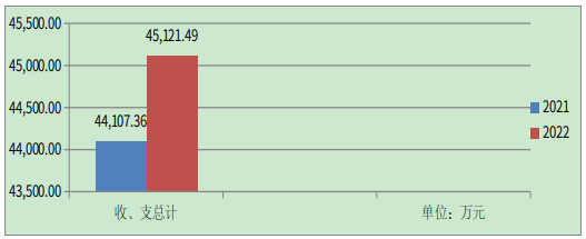 2022年度收、支总计45121.49万元。与2021年相比,收、支总计各增加1014.13万元,增长2.3%。主要变动原因是加大对学校信息化建设及公办学校义务教育学位的投入。