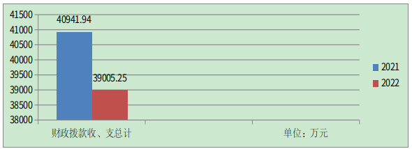 2022年财政拨款收、支总计39005.25万元。与2021年相比,财政拨款收、支总计各减少1936.69万元,下降4.73%。主要变动原因是本年度无上年项目资金结转。(注:数据来源于财决01-1表)