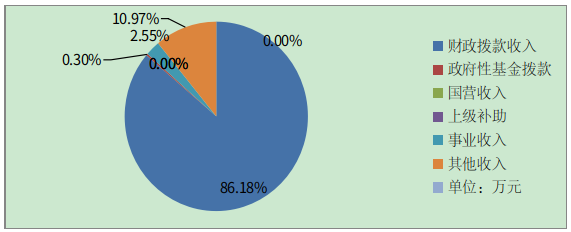 2022年本年收入合计45100.41万元,其中:一般公共预算财政拨款收入38867.9万元,占86.18%;政府性基金预算财政拨款收入137.35万元,占0.3%;国有资本经营预算财政拨款收入0万元,占0%;上级补助收入0万元,占0%;事业收入1149.65万元,占2.55%;经营收入0万元,占0%;附属单位上缴收入0万元,占0%;其他收入4945.51万元,占10.97%。