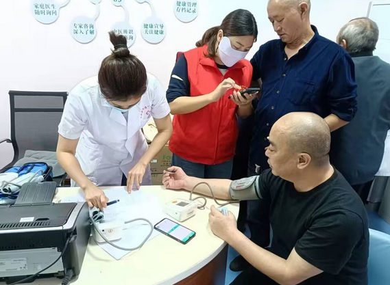 在天保镇龙坝村,改造升级后的村卫生室焕然一新。里面设有全科诊室、输液室、治疗室、药房等多个功能区,还增配了心电图机、红外线治疗仪等多种医疗设备,乡村医生正细心地为村民们免费测量血压、血糖。